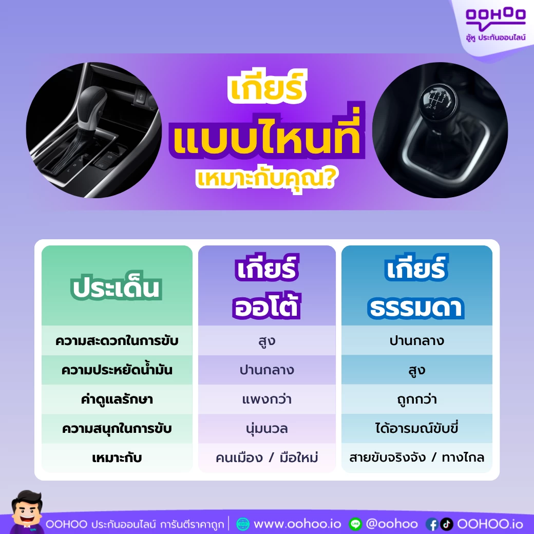 ไม่ว่าคุณจะเลือกรถเกียร์ออโต้หรือเกียร์ธรรมดา อย่าลืม เลือกทำประกันรถยนต์ เพื่อเพิ่มความอุ่นใจทุกครั้งที่ขับขี่ เพราะอุบัติเหตุเกิดขึ้นได้เสมอ และการมีประกันดี ๆ จะช่วยคุ้มครองทั้งคุณและรถได้อย่างครอบคลุม