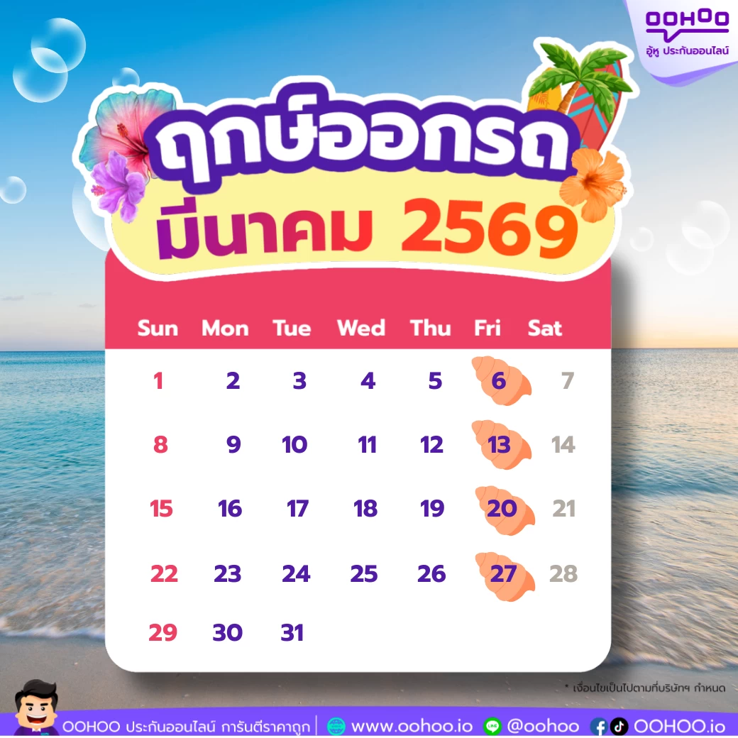การเลือก ฤกษ์ออกรถใหม่เดือนมีนาคม 2569 ถือเป็นการเริ่มต้นที่ดี แต่การเลือก ประกันรถยนต์ที่เหมาะสม คือการปกป้องคุณในระยะยาว เริ่มต้นความมั่นใจตั้งแต่วันรับรถ ด้วยฤกษ์ดี + ประกันดี เพื่อทุกการเดินทางที่ปลอดภัยตลอดปีออกรถใหม่มีนาคม 2569 เลือกฤกษ์ดี เสริมดวงการเดินทาง พร้อมทำประกันรถยนต์ให้ครบจบในที่เดียวที่ OOHOO.IO