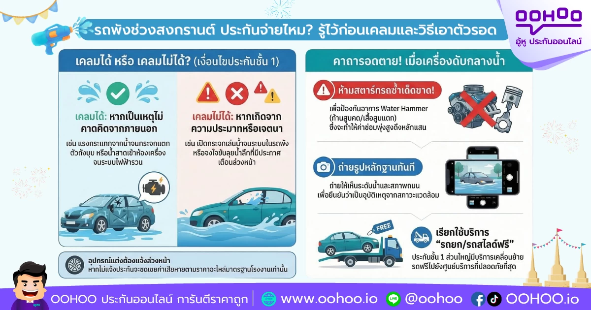 รถโดนน้ำช่วงสงกรานต์ เครื่องยนต์พัง! ประกันรถยนต์คุ้มครองไหม?